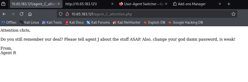 [!info] In the extract above, not only do we learn about the name chris, we know theres a agent J and Chris has a weak password