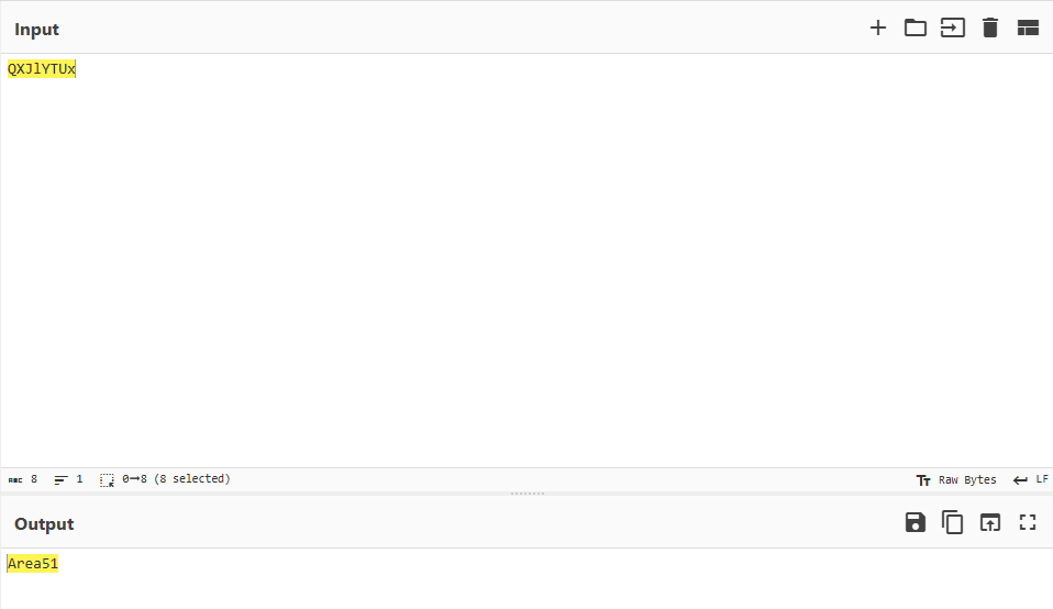 [!info] Initially thought the message was related to a user (QXJ1YTUx) but it was referring to a place which is Area51: