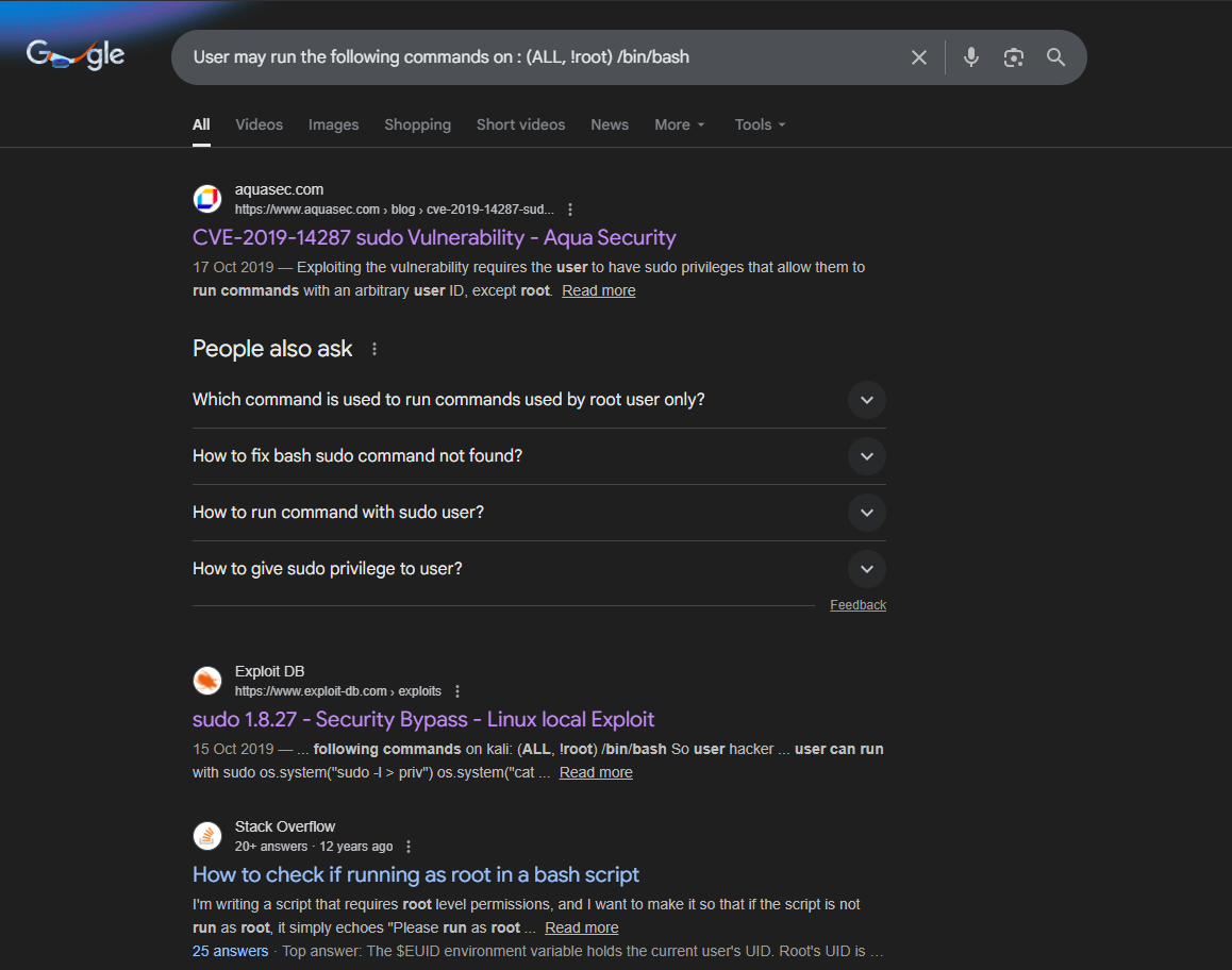 [!note] Using earlier knowledge about the /bin/bash, i put the following into google to see if any CVE relates to this and it did: