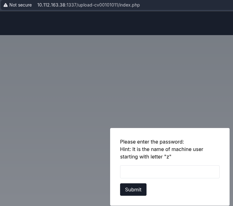 | 3 | /upload-cv00101011/index.php | // ONLY ACCESSIBLE THROUGH USERNAME STARTING WITH Z |