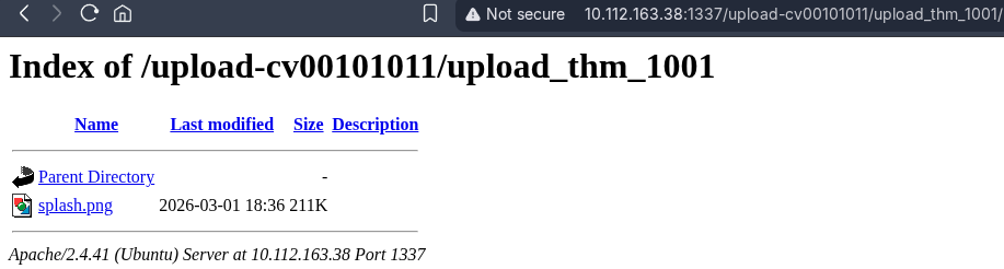 [!note] Ok so file got uploaded to “span style=” display: none;”>in /upload_thm_1001 folder</span”
